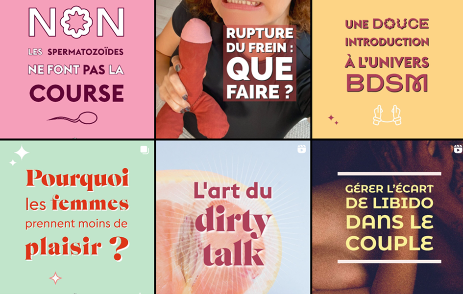 Ce sont principalement les réseaux sociaux qui répondent à cette demande de contenu plus décomplexé et exhaustif. De nombreuses pages dédiées abordent les thématiques du consentement, de l’orientation sexuelle, de la contraception, mais aussi du plaisir et de la masturbation. C’est le cas par exemple du compte Instagram Merci Beaucul qui répond sans tabou aux questions des abonnés. Le but exposé par Léa, la fondatrice, sur son site est de : « partager tous.tes ensemble des tips pratiques et cool, proposer un espace d’écoute sécure et sans jugement, pour au final que tout le monde kiffe au maximum à sa manière, en sachant définir ses besoins, ses limites et ses envies. »